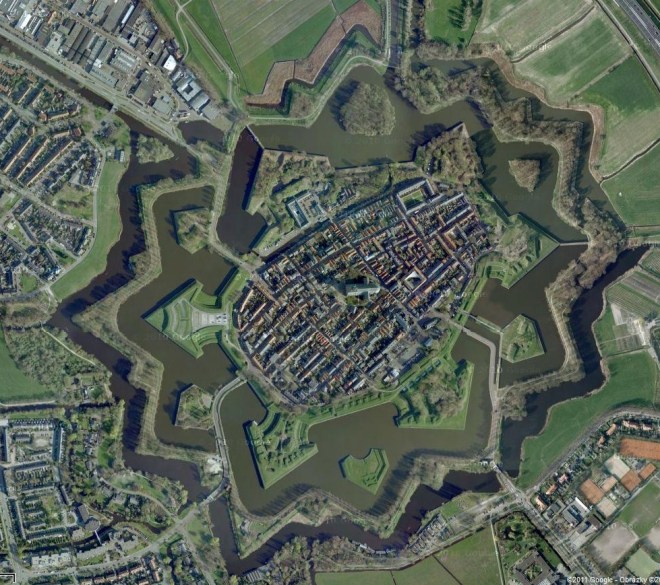 Prohlídka pevnosti včetně podrobné fotodokumentace bude předmětem samostatného následujího článku. zatím tedy přikládám jen současný družicový snímek Naardenu – Google Mapy: