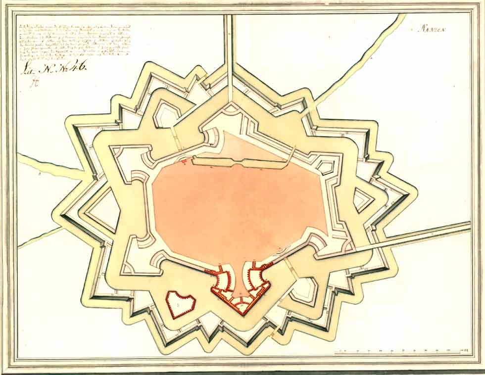 ii. Ostwald, Jamel. 1997. Vauban under siege: Engineering Efficiency and Martial Vigor in the War of the Spanish Succession (Leiden a Boston, Brill), 76 nebo 105 a 106 a zvláště mapa na str. 118.