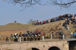 Zde už bylo návštěvníků pevnosti mnohem více a počítali se na stovky. Diváci obsypali dochovanou polovinu Ravelinu XVII i prostor kolem bývalého pevnostního mostu. Nad Josefovem vysvitlo jen symbolicky mrazivé slunce a jen zbytky sněhu, místy skryté ve stínu, naznačovaly, jak se letos zima drží zuby nehty a nechce nás zatím opustit.