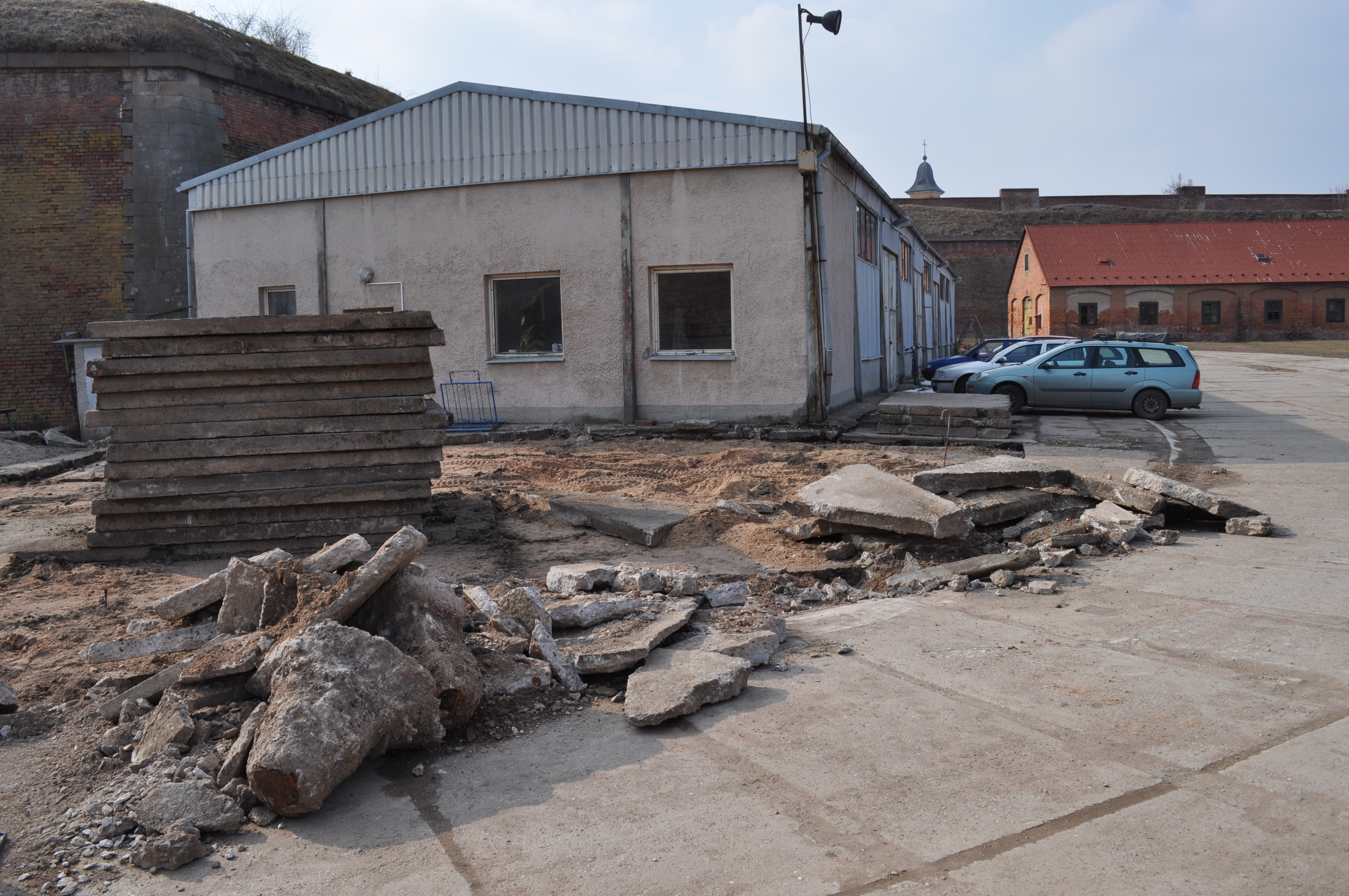 - Práce u staré vojenské haly.