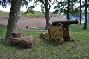 Přináším jen první letmé dojmy z letošních Josefovských slavností, které se jako obvykle konaly v prostoru hlavního příkopu u Bastionu I, Shromaždiště XXX a částečně zachovaného pravého líce Ravelinu XVII a pevnostním mostem. Vlevo: replika tříliberního polního kanónu na pevnostní lafetě, náležející sdružení RavelinXIV. V bednách připravené slaměné ucpávky, dávky prachu, za kanónem připravený nabiják a vytěrák. Celý příspěvek