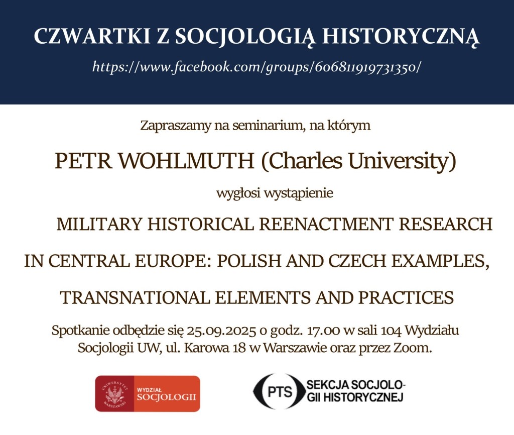 Mám to štěstí, že září a říjen trávím na stáži na Fakultě historie Varšavské univerzity. Skvělý čas, kdy přednáším pro kolegyně a kolegy, doktorandy i magisterské studenty (jedna z mých přednášek byla zařazena do prestižního interdisciplinárního semináře Čtvrtky s historickou sociologií) – a společně s několika dalšími ze tří dalších univerzit postupujeme na cestě směrem k budoucímu podání rozsáhlého mezinárodního projektu, věnujícího se temnějším „undercurrents“ vojenského historického reenactmentu ve střední a výchovní Evropě. Varšavská univerzitní knihovna je navíc skvělé místo pro psaní. Čeká mě ještě jedna přednáška příští týden a pak už se zase vracím ke své alma mater do Prahy…